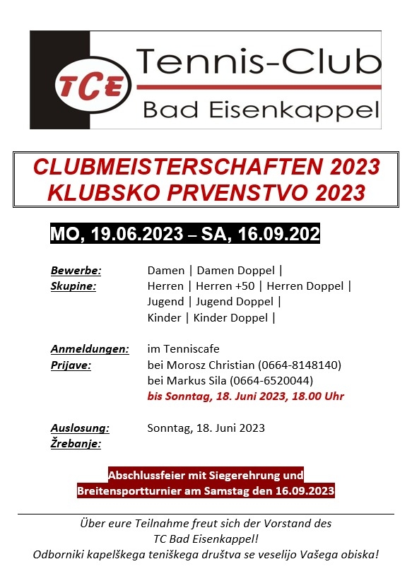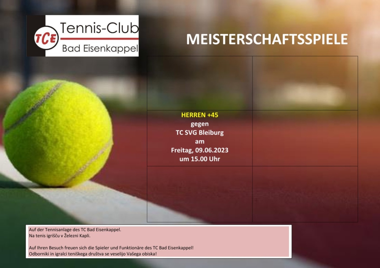 TC - Bad EisenkappelPlatzadresse:Vellach 10 - Tenniszentrum9135 Bad Eisenkappel